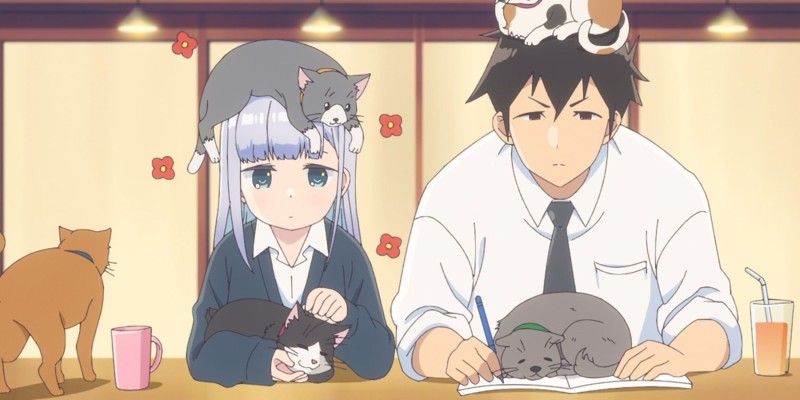 Aharen e Raido estudando no Cat Cafe