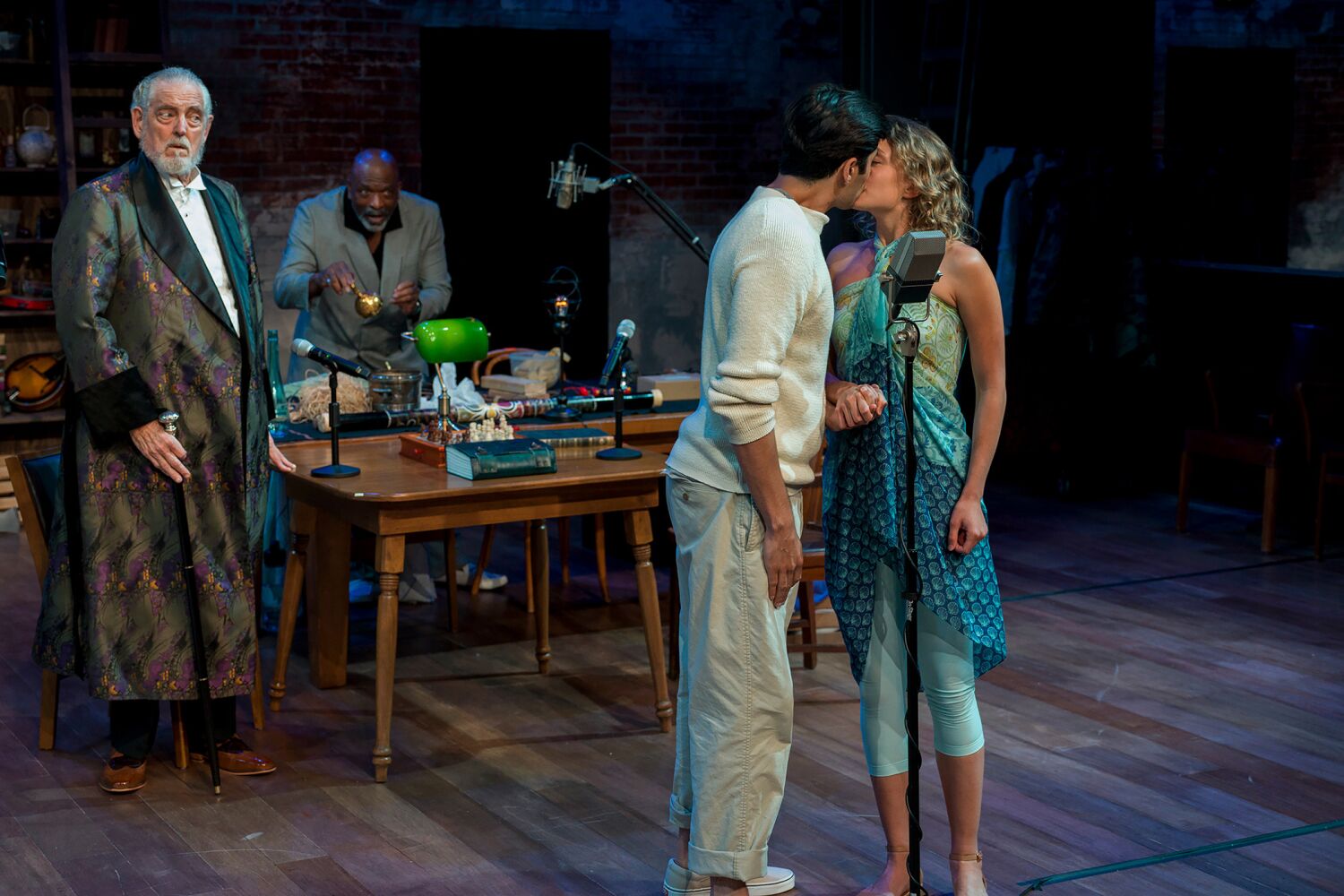 Os atores não precisam de amplificação nesta casa íntima, mas Doukas criou esta “Tempestade” como uma peça de rádio no estilo dos anos 1940. Infelizmente, os atores não ajustam o volume de suas vozes no palco. Como resultado, a peça de Shakespeare parece estar sendo transmitida por um megafone.