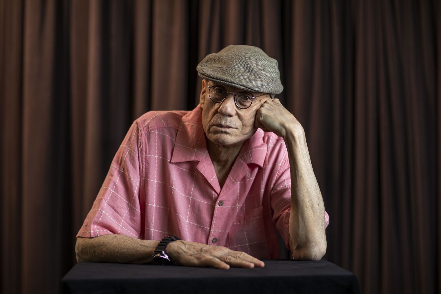James Ellroy subiu ao palco no sábado com calça azul-petróleo, camisa de botões rosa chiclete e tênis Converse branco, gesticulando para que o público do Festival de Livros do LA Times continuasse com seus aplausos saudando-o e seu entrevistador, o romancista policial Michael Connelly.