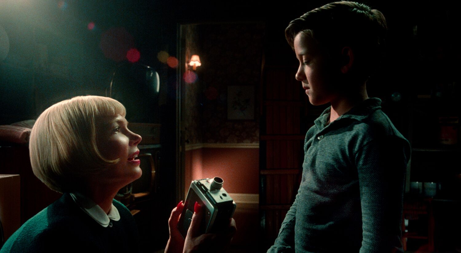 “Foi muito emocionante”, diz Janusz Kamiński sobre o trabalho em “The Fabelmans”, uma história de vida de Steven Spielberg na qual o diretor segura um espelho diante de seu próprio retrato de família. “Aprendi muito sobre ele antes de entrar em sua vida”, compartilha o diretor de fotografia duas vezes vencedor do Oscar com o The Envelope. Ao revisitar o passado de Spielberg, as cenas foram enquadradas com um olhar para a composição clássica, enquanto a iluminação foi romantizada durante a estada da família em sua casa em Nova Jersey. Quando o jovem Sammy (substituto do próprio Spielberg) recebe uma câmera de cinema da mãe, Mitzi (Michelle Williams), para ajudá-lo a superar seus sonhos conturbados, o momento se torna uma metáfora efervescente. “Isso realmente significa sobre o que é o filme”, diz Kamiński. “Ele queria ser amado como qualquer outra criança, e aceito, recompensado e admirado. Ele recebeu dela o maior presente de sua vida. Metade de seus genes são dela, que eu acho que são suas tendências artísticas e o dom físico que o permitiu fazer filmes”. Mitzi brilha como um anjo na imagem de baixo contraste enquanto a câmera prateada se torna um ponto focal. “Tomei a decisão consciente de fazer a câmera brilhar, para se destacar quase como um talismã. Ele consegue essa coisa mágica que ilumina seu caminho. E aconteceu, você sabe.