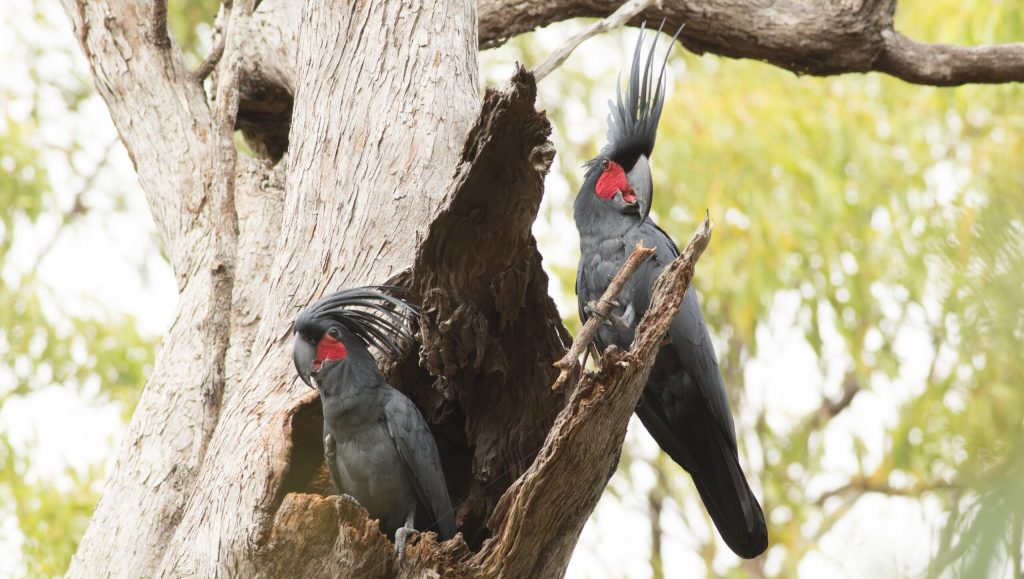 “As fêmeas monitoram todos os seus movimentos, enquanto os machos demonstram a tremenda força do bico cortando até 3 cm de madeira dura”, disse ele.