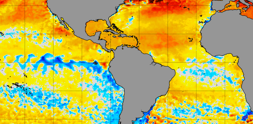 Os últimos dois anos têm visto temperaturas oceânicas excepcionalmente altas no Atlântico e em grande parte dos oceanos do mundo. As duas Niñas provavelmente contribuirão com algum alívio de resfriamento para certas regiões, mas pode não durar muito.
