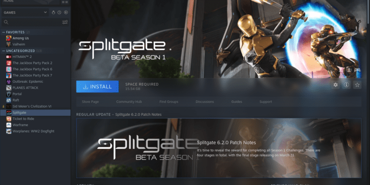 Você pode pegar a versão mais recente do Steam Snap na Snap Store. A Canonical observa que aqueles que desejam ajudar a testar a compatibilidade do jogo podem mudar a instalação do Snap para uma versão “edge” e enviar relatórios sobre jogos individuais, que aparecem em sua discussão no GitHub.