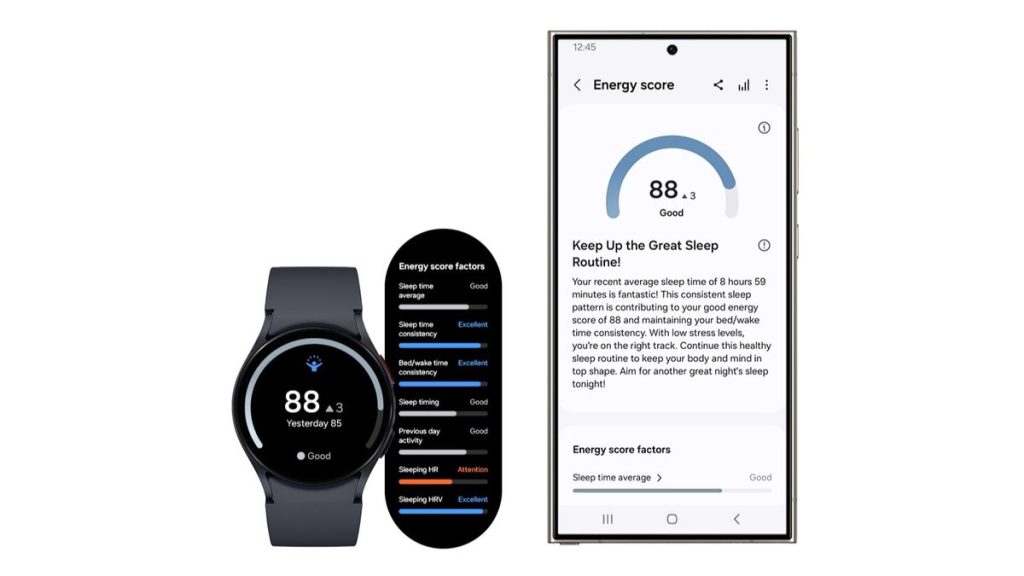 O anúncio da Samsung sugere que alguns desses recursos do Galaxy AI usarão “poderosa IA no dispositivo”, enquanto outras métricas dependerão dos dados do Samsung Health do seu telefone ou da nuvem. Os recursos anunciados pela empresa incluem uma pontuação de energia que analisa “tempo médio de sono, consistência do tempo de sono, consistência do horário de dormir/vigília, tempo de sono, atividade do dia anterior, frequência cardíaca durante o sono e variabilidade da frequência cardíaca” para quantificar a condição diária do usuário.