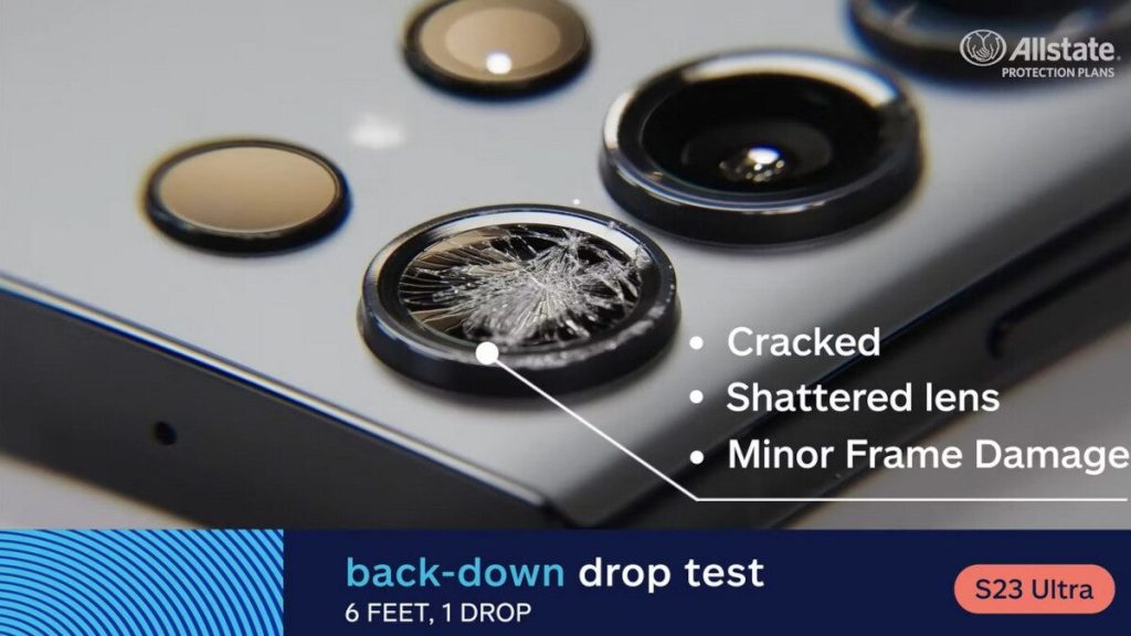 O teste de queda de 6 pés para trás para o Galaxy S23 deixou o vidro traseiro com rachaduras, vidro elevado e danos ao quadro. O S23+ sofreu rachaduras e danos na estrutura do painel traseiro. Mais uma vez, o Galaxy S23 Ultra teve um salto estranho, mas pode ter piorado as coisas para o segundo teste, pois o dispositivo tinha uma lente quebrada, rachaduras e pequenos danos ao quadro.