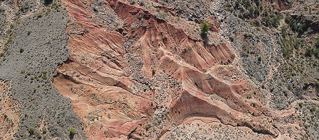 Acumulação de rochas sedimentares nos Pirenéus espanhóis. Os estratos vermelho e amarelo mostram sedimentos depositados no continente há 56 milhões de anos. Crédito: Marine Prieur