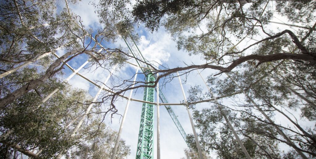 O estudo utilizou dados do Experimento de Enriquecimento de Ar Livre de Dióxido de Carbono de Eucalipto (EucFACE) da Universidade, o maior projeto de pesquisa da Austrália sobre mudanças climáticas. As árvores do EucFACE têm até 25 metros de altura, com dióxido de carbono adicional adicionado a elas através de um sistema externo controlado por computador.