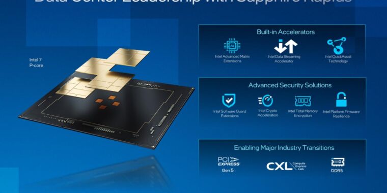 Outros recursos do Sapphire Rapids incluem suporte de memória DDR5, conectividade PCI Express 5.0 e suporte para o padrão Compute Express Link (CXL) 1.1, todos os recursos que também serão suportados pelo Genoa da AMD. (Esses eram os “três grandes novos sistemas” aos quais Gelsinger se referia em sua entrevista.)