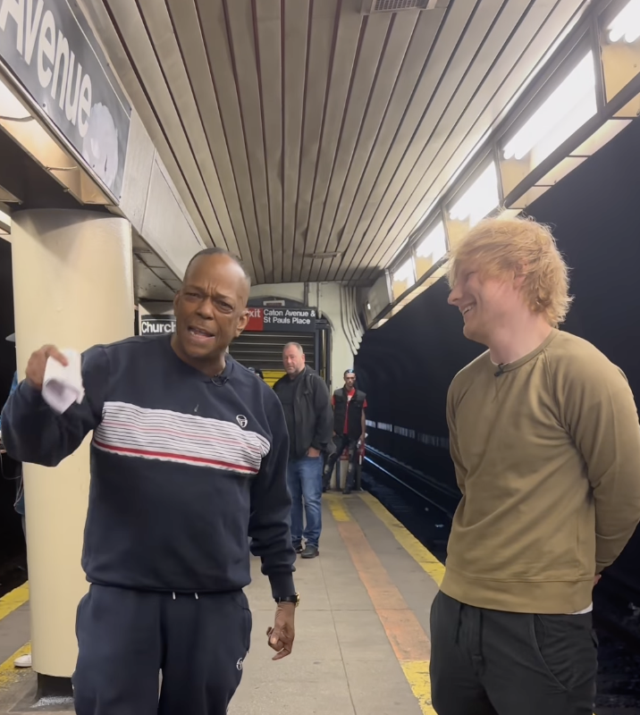 Depois que Yung e Sheeran se abraçaram, a estrela pop disse a ele: “Eu te amo” antes de incentivá-lo a continuar sua apresentação. Enquanto Yung cantava o refrão, Sheeran balançou a cabeça. As pessoas começaram a se reunir e filmar a dupla improvável. Sheeran juntou-se a Yung nas notas altas do refrão – “Eye-eye-eye-eyes closed” – enquanto suas vozes enchiam a estação de trem da Church Avenue.