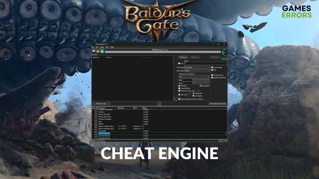 2. Use o Cheat Engine, utilizando a folha de dicas BG3 já desenvolvida pela comunidade