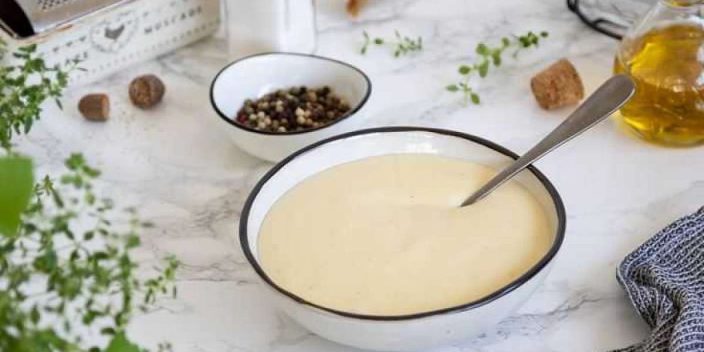 Coloque a manteiga, a farinha, a noz-moscada, e a pimenta em uma tigela própria para micro-ondas.