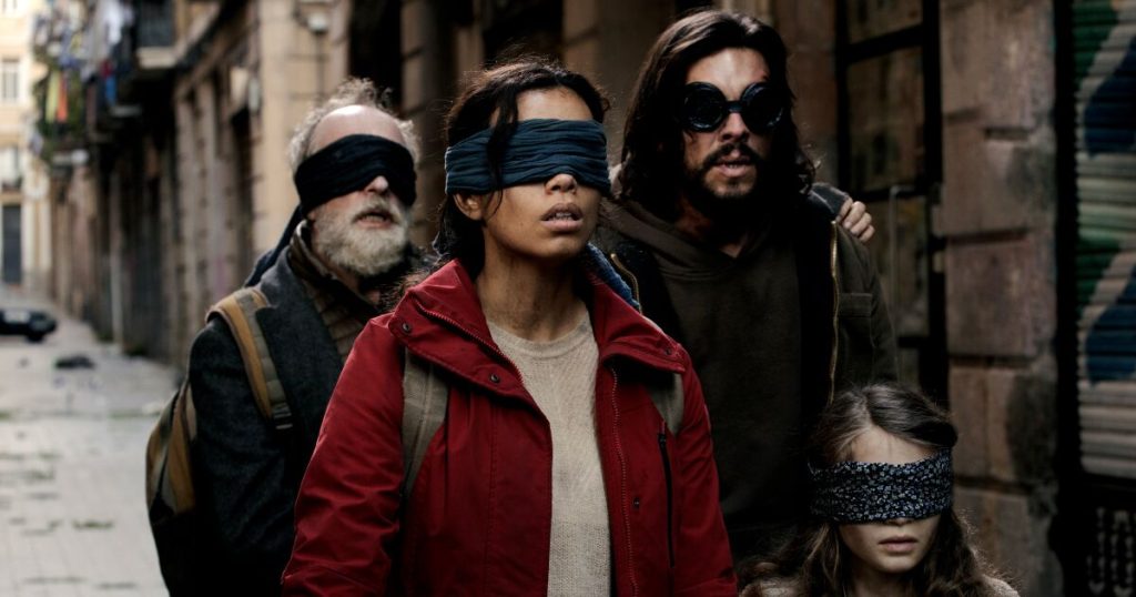 O thriller de 2018 “Bird Box” chegou sem muito hype, mas ainda se tornou um dos maiores sucessos da Netflix, por dois motivos. Por um lado, a estrela do filme era a eternamente popular Sandra Bullock, interpretando uma sobrevivente de um evento apocalíptico. O filme também pegou porque seu enredo (adaptado de um romance de John Malerman) inspirou uma série de memes e desafios virais “de olhos vendados”, extraídos da premissa central de invasores paranormais não identificados espalhando uma loucura suicida para humanos que olham diretamente para eles.