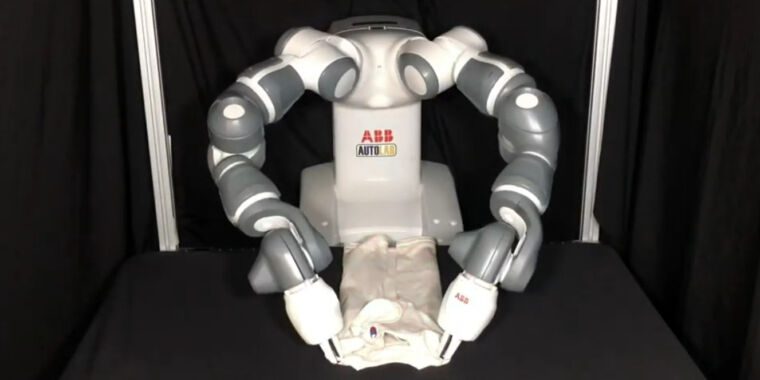 No que diz respeito ao próprio hardware do robô, os pesquisadores usaram um robô industrial ABB YuMi com pinça dos dedos “excuidados por pequenos dentes impressos em 3D para melhorar a preensão.” um robô de aparência muito semelhante (o YuMI IRB 14000) custa US $ 58.000, portanto, os sonhos de executar o SpeedFolding em casa não estão ao alcance de uma família típica. Mas a técnica pode eventualmente ser filtrada para a robótica doméstica.