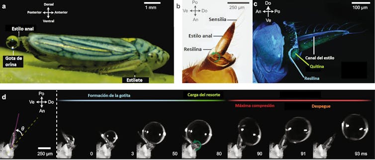 Böcek, damlacıkları serbest bırakılmadan hemen önce sıkıştırarak, potansiyel enerjiyi yüzey gerilimi şeklinde depolar ve elastik zarlar gibi davranmalarına neden olur. Yüklü damla, kalkış için optimum çapa yaklaştığında, kalem yaklaşık on beş derece geriye doğru esner ve ardından, bir mancınık kolu gibi, kütleyi yerçekiminden kırk kat daha büyük bir ivmeyle saatte 115 km’ye varan hızlarda fırlatır.