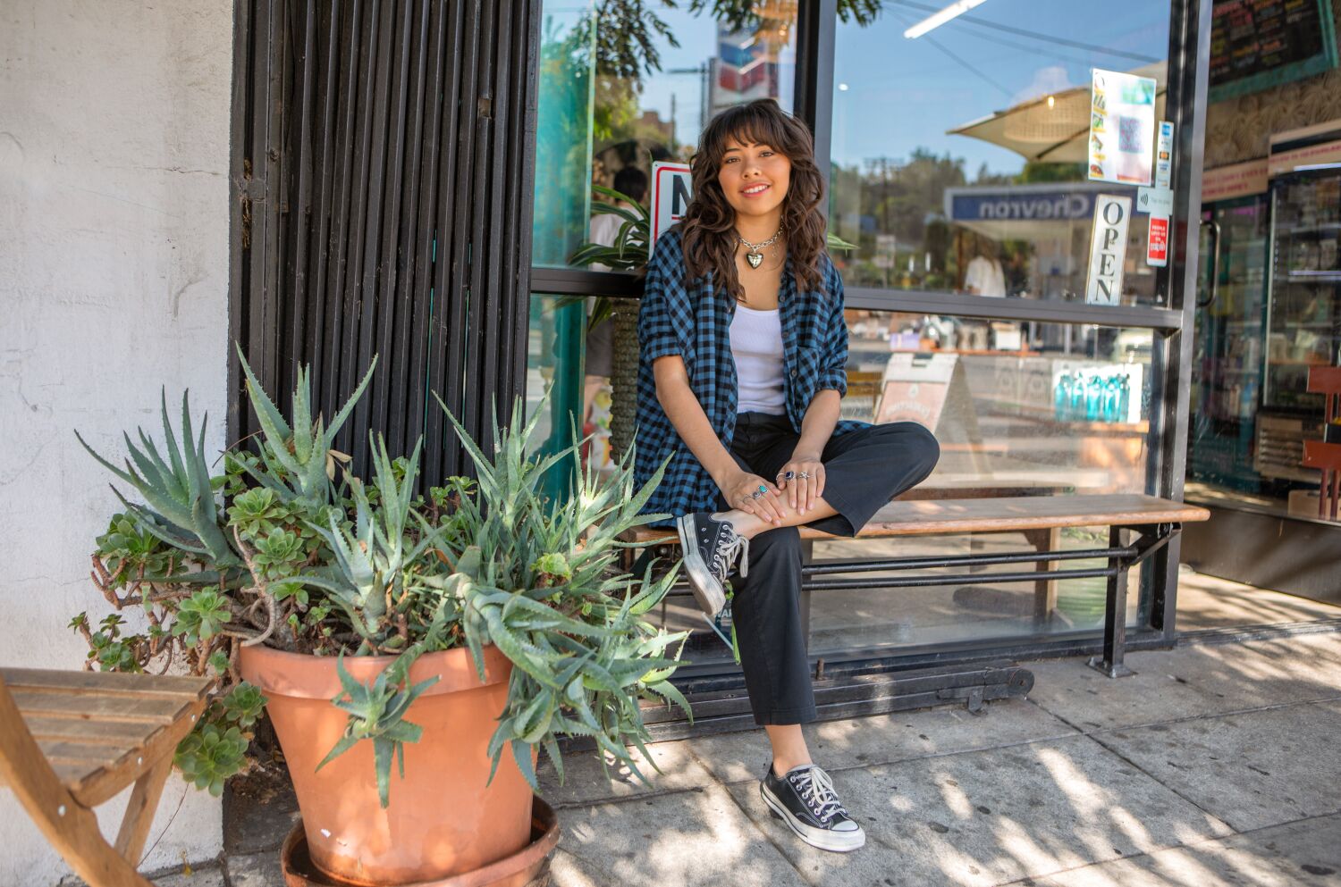 Falando pelo Zoom de sua casa em Echo Park, a jovem de 16 anos compartilha que está no modo de estudante entre os projetos. Ela está atualmente lendo “Animal Farm” como parte de seu currículo de estudo independente: “É intenso”. Ela se torna mais animada quando a conversa se volta para o que ela adora em se apresentar.