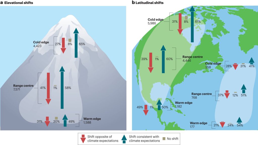 Os pesquisadores descobriram que o aquecimento climático foi um bom preditor básico para os movimentos da maioria das 26.000 espécies rastreadas no BioShifts, um banco de dados global. De fato, 59% das espécies mudaram para ambientes mais frios.