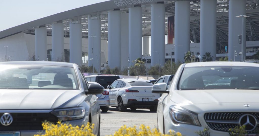 Tenha em atenção que os passes de estacionamento para o recinto SoFi são vendidos por zonas, pelo que não terá um lugar específico reservado. Em vez disso, você será direcionado a um espaço pela equipe, que não verá com bons olhos suas tentativas de guardar os espaços próximos a você para os SUVs de seus amigos.