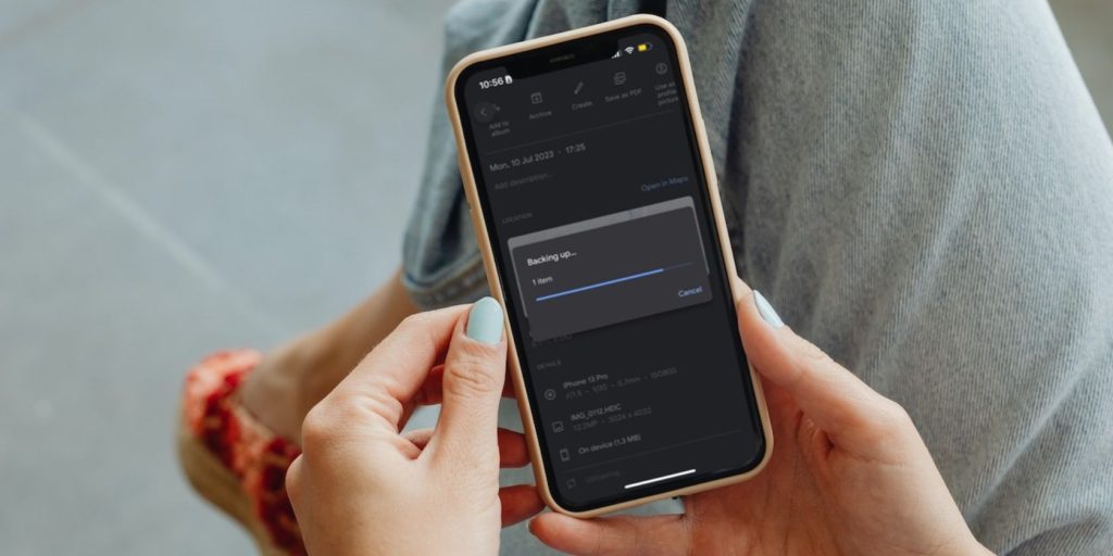 - Selecione a imagem e toque no cópia de segurança botão no canto superior direito. Parece uma nuvem com uma flecha dentro. Um pop-up aparecerá, exibindo o progresso.