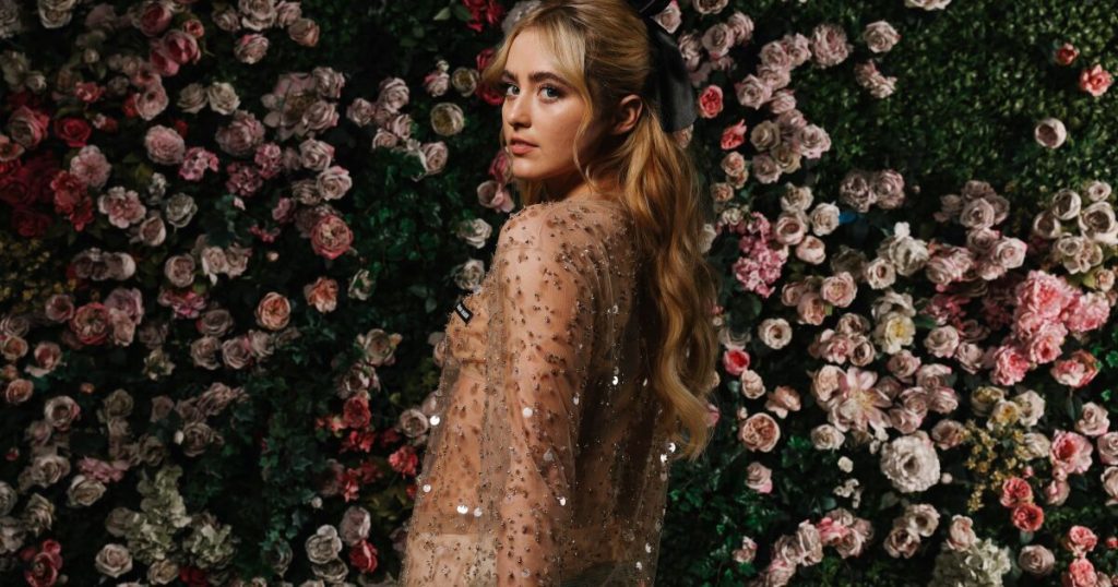Kathryn Newton e um amigo peludo no Beverly Wilshire Hotel.