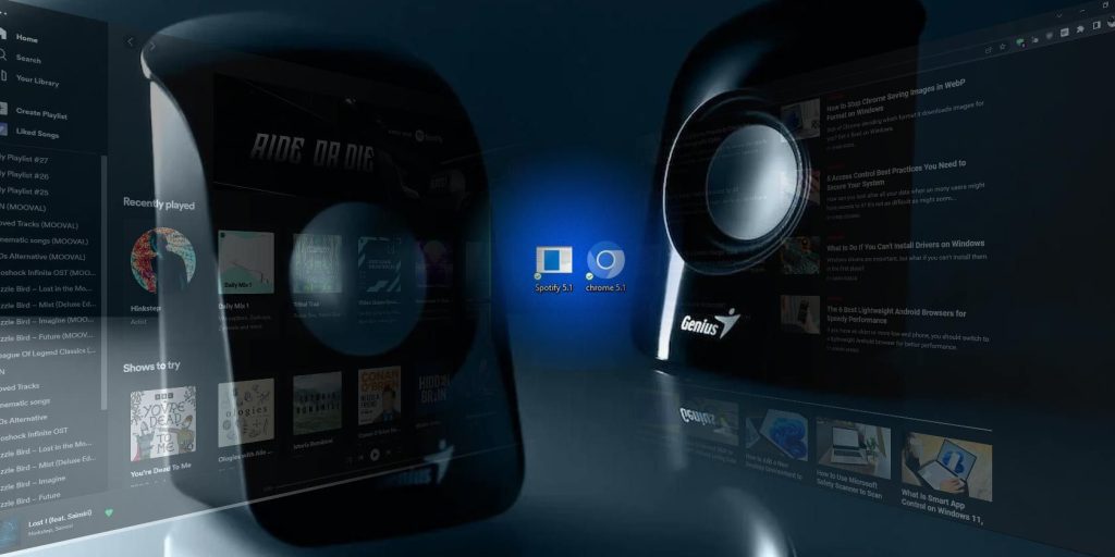 Não importa quantos alto-falantes você tenha, a maioria das pessoas acredita que dois alto-falantes são suficientes para PCs de mesa. E ao usar um laptop, os fones de ouvido são preferíveis para mobilidade. Assim, a priorização de saída estéreo do Chrome e Spotify é apropriada.