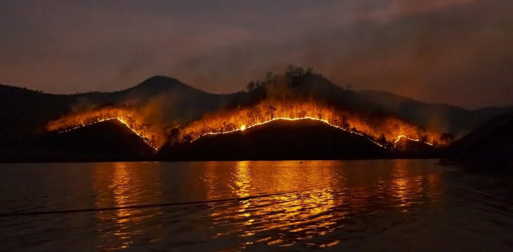 Uma forma de combater incêndios é utilizar grandes quantidades de água, muitas vezes retirada de lagos. Crédito: Pixabay