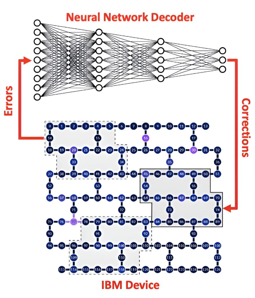 O desempenho do decodificador de rede neural foi comparado diretamente com processadores quânticos da IBM, demonstrando que ele pode processar com eficiência erros complexos de hardware quântico real e fazer as correções apropriadas.
