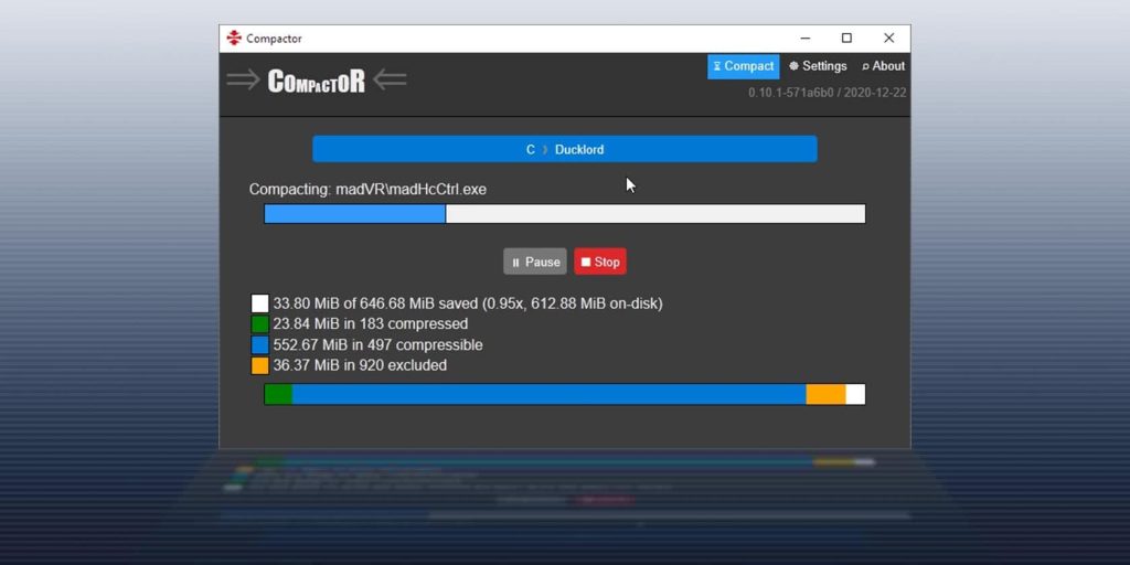 Embora o compact.exe faça parte das versões modernas do Windows, o Compactor é um front-end não oficial para ele e, portanto, um aplicativo de terceiros que você terá que baixar. Você pode encontrá-lo na página oficial do GitHub do Compactor.