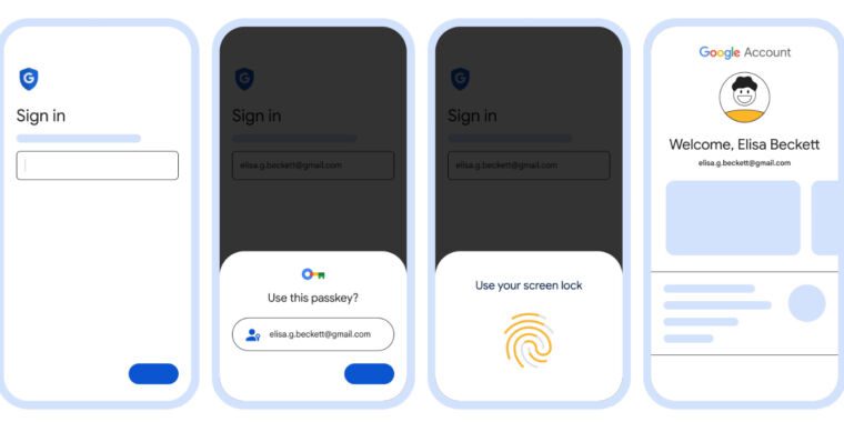 As chaves de acesso fazem com que seu sistema operacional troque diretamente os pares de chaves público-privadas – o padrão “WebAuthn” – com um site, e é assim que você é autenticado. A demonstração do Google de como isso funcionará em um telefone parece ótima – a caixa usual solicita seu nome de usuário do Google e, em vez de uma senha, solicita uma impressão digital, que desbloqueia o sistema de senha e você está conectado.