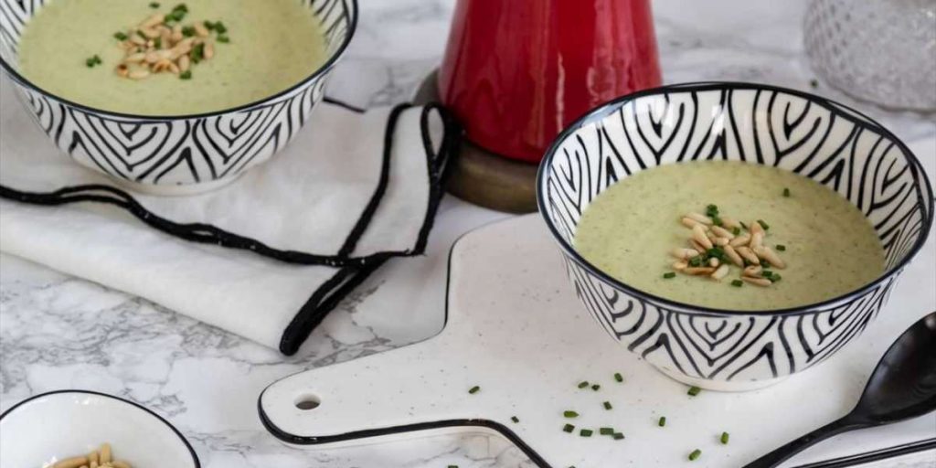 Descasque e corte a batata e o alho-poró em rodelas. Refogue as batatas e o alho-poró em uma panela com 2 colheres de sopa de óleo por cerca de 10 minutos. Adicione a abobrinha fatiada e deixe por mais 10 minutos. Despeje 300 ml de água quente e cozinhe por 15 minutos. Retire do fogo, acrescente o leite e o whey e o queijo e bata. Adicione pimenta.