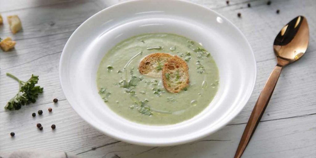 Corte o alho-poró em rodelas e a abobrinha e a cenoura em pequenos quadrados. Refogue em fogo baixo com azeite por cerca de 10 min. Adicione o espinafre e despeje o cubo de caldo dissolvido na água quente. Leve para ferver e cozinhe por cerca de 10 min. Adicione o leite com o whey, tempere com pimenta e bata até obter um creme fino. Adicione mais pimenta se necessário.