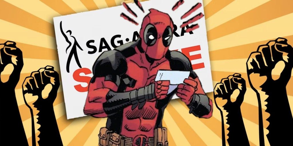 Anos antes do atual greve SAG-AFTRA encerrar as produções em Hollywood, Piscina morta chamou a atenção para o baixo salário que os membros do Screen Actors Guild recebem das produções cinematográficas. Filmando no terceiro Piscina morta o filme foi interrompido por causa da greve dos atores, mas Deadpool e o Homem-Aranha quase atrapalharam outro filme baseado no Merc with a Mouth.