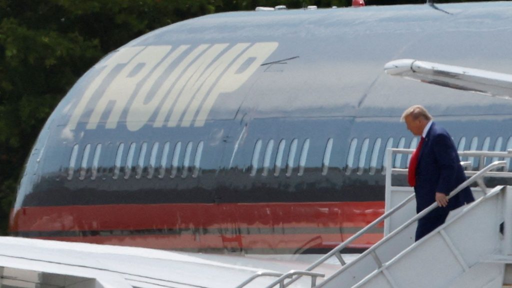 Ele pousou em seu avião particular na tarde de segunda-feira, um dia antes de sua apresentação inicial perante um juiz.