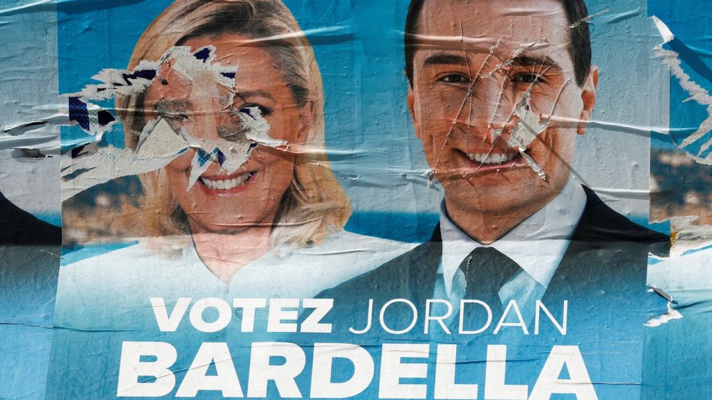 O Rally Nacional, liderado por Jordan Bardella, obteve o maior número de votos no primeiro turno da eleição em 30 de junho.