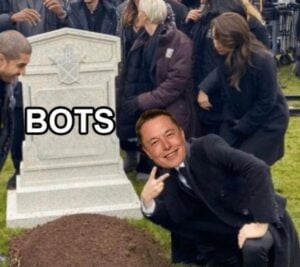 A imagem compartilhada no tweet é um meme de ‘bots’, referindo-se à tentativa de Musk de reduzir a atividade de bots no Twitter. E, de fato, a maioria das URLs listadas que foram reportadas ao Google vendem camisetas estampadas com esse meme.
