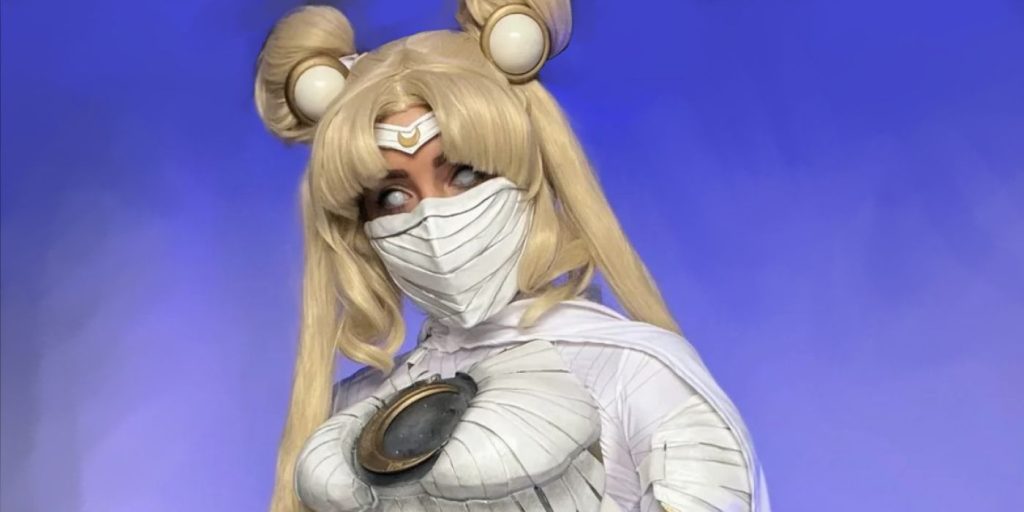 Visto em um par de fotos compartilhadas no Reddit através do subreddit r/Cosplay pelo usuário @lisamancinerh, o cosplay é baseado na visão do Universo Cinematográfico da Marvel sobre o Punho de Khonshu, com a tiara do Guardião do Amor e da Justiça e penteado inconfundível adicionado ao mix – embora com mudanças para combinar com o tema do Cavaleiro da Lua – e a máscara cobrindo apenas metade de seu rosto. A primeira foto mostra @lisamancinerh em um corpo quase inteiro segurando uma Lâmina Crescente ao seu lado, enquanto a segunda a mostra segurando-a. A foto também chama mais atenção para as estranhas lentes de contato brancas que ela está usando.