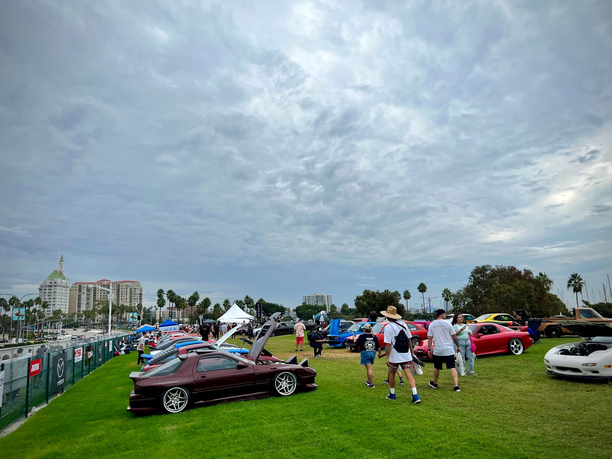 Com uma brisa marítima decente, o cenário era perfeito para um show à beira-mar. Quando chegamos à área de estacionamento (na superfície da pista do GP de Long Beach), ficou evidente que se tratava de um encontro de qualidade. Por que? Porque só com base no que vi no estacionamento geral, poderia ter sido um salão de automóveis completo.