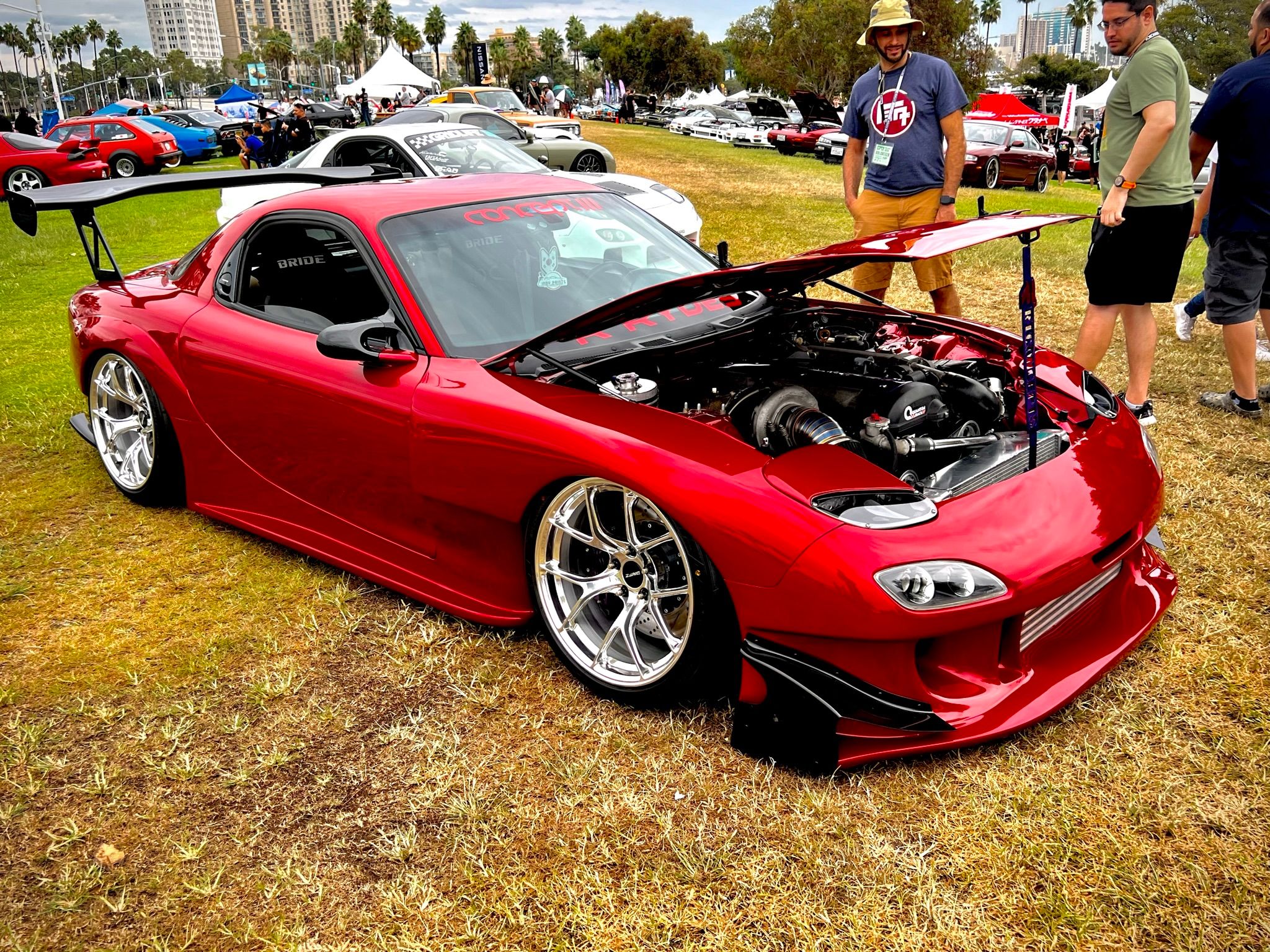 Vimos até um caminhão rotativo Mazda dos anos 70 ultra-raro em qualidade de saguão. O icônico FD RX-7 teve presença marcante. Do OEM + ao drift to show, você pode encontrar diversas variações deste lindo cupê. Um exemplo digno de nota foi um FD RX-7 widebody vermelho completo com um grande turbo 2JZ de seis em linha. Este é o carro dos sonhos de um sintonizador JDM que brilhava mesmo em tempo nublado.