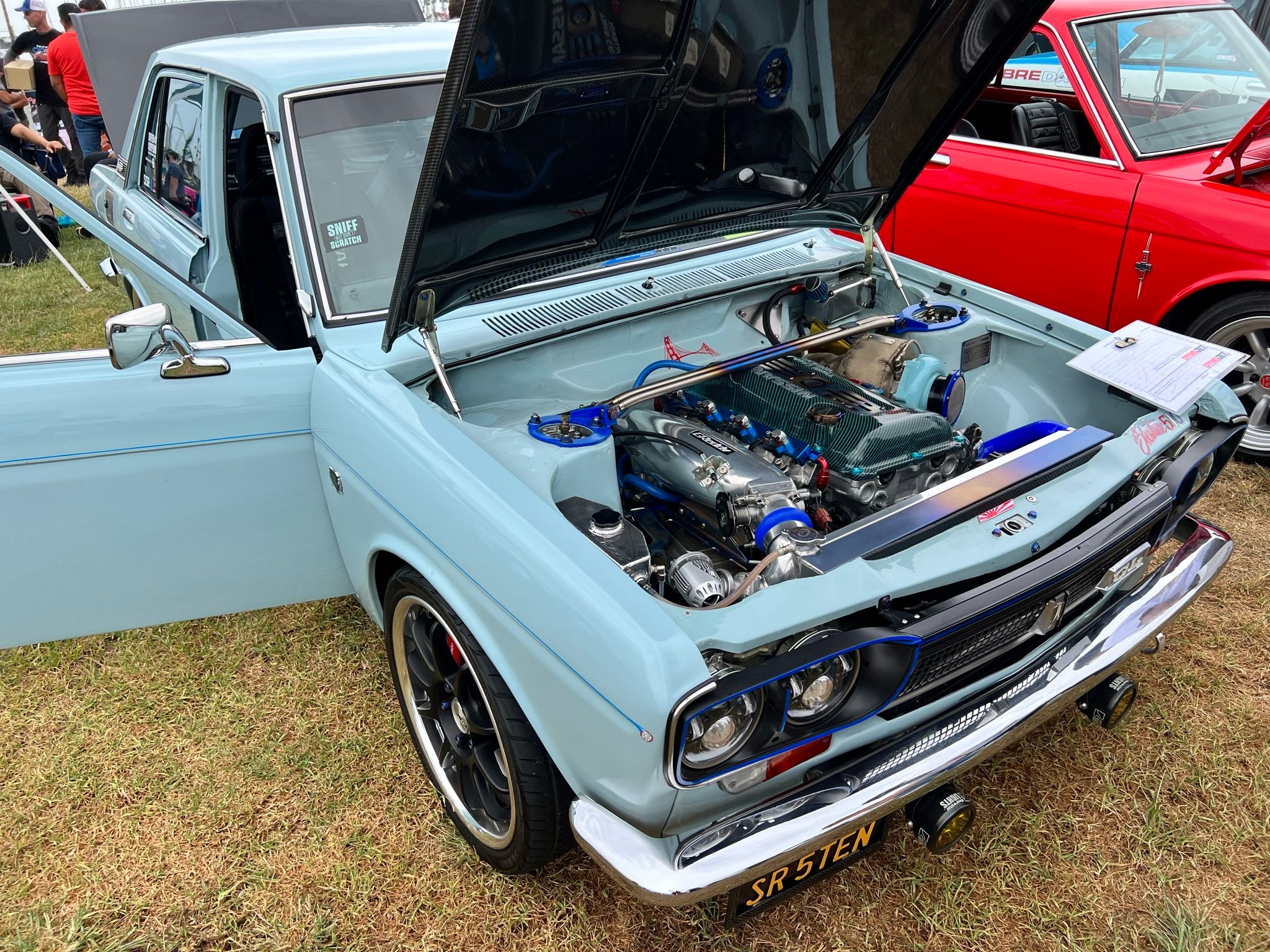 Na multidão de Nissans, você poderá encontrar os 510 e 410 mais legais que você já viu. Encontramos um com motor SR20 com tampa de válvula de carbono azul e uma grande cor turbo combinando com a pintura. Completo com uma folha dinâmica mostrando 450 cavalos de potência nas rodas, isso colocou medo em nossos corações. Um 510 até apresentava um Honda K-Series com motor ITB em um compartimento de motor onde limpeza seria um eufemismo.