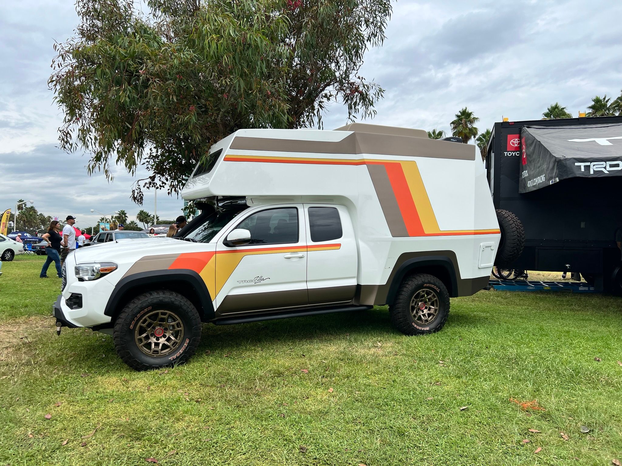 A maior montadora do mundo fez questão de marcar presença no JCCS deste ano. No estande da Toyota encontramos o protótipo “Tacozilla”. Esta moderna autocaravana Tacoma é uma homenagem às autocaravanas oferecidas pela marca japonesa com a picape Hilux nos anos 80. As clássicas cores marrom, laranja e amarelo dão uma sensação de nostalgia. Embora isso seja atualmente único, seria incrível ver a Toyota trazer de volta algo assim quase quatro décadas depois, pelo menos como uma opção.