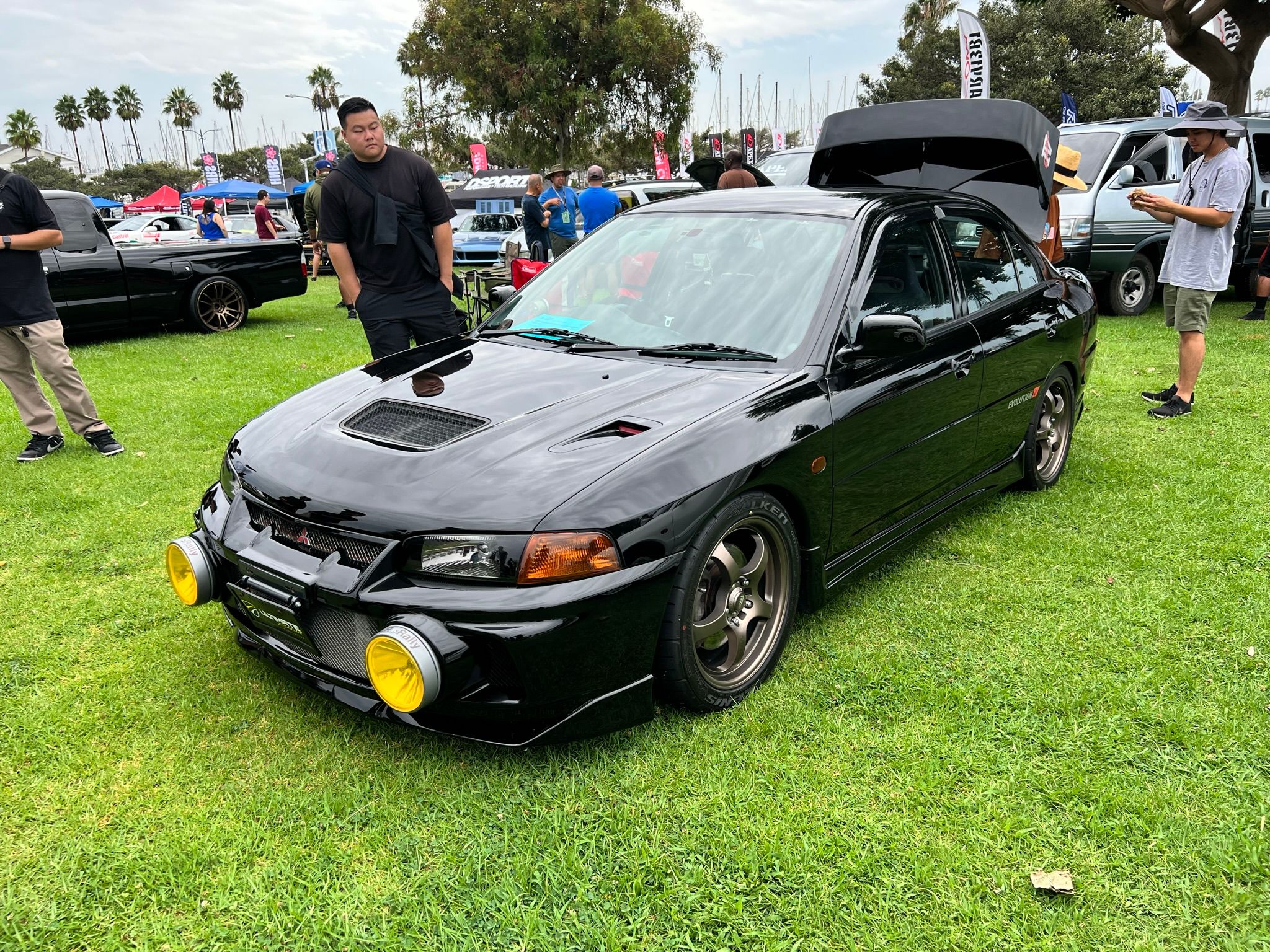 Embora não seja tão abundante, ainda havia uma seleção interessante de outros veículos JDM. Havia um OEM + preto Mitsubishi EVO IV completo com enormes faróis de neblina salientes. Uma microvan Subaru Sambar de quinta geração ou “carro Kei” era algo que nunca tínhamos visto antes pessoalmente. Sem mencionar uma variedade de motocicletas japonesas antigas ao longo de várias décadas.