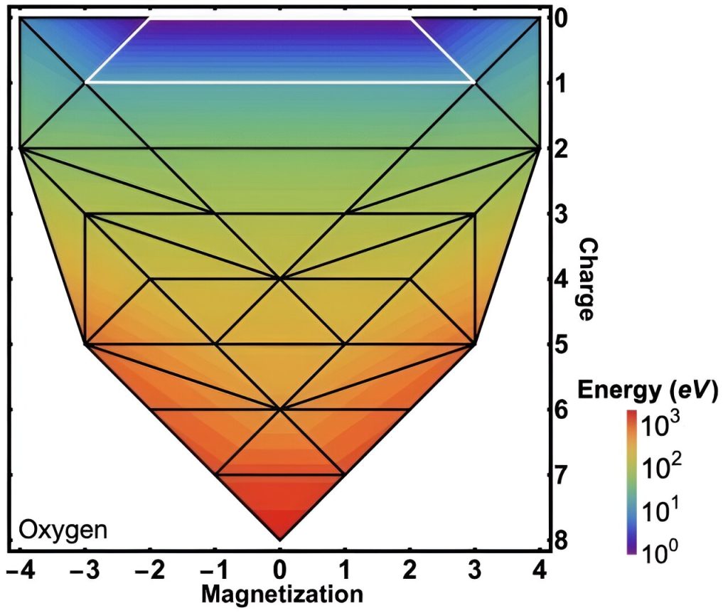 Uma ilustração da paisagem energética exata do átomo de oxigênio, que toma a forma de um vale de azulejos, conforme descrito pela teoria mecânica quântica. Crédito: Cartas de revisão física (2024). DOI: 10.1103/PhysRevLett.133.026404