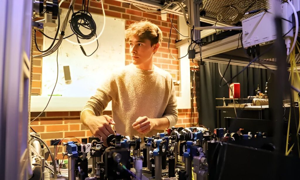 Tommaso Faleo no laboratório do Departamento de Física Experimental. Crédito: Universidade de Innsbruck