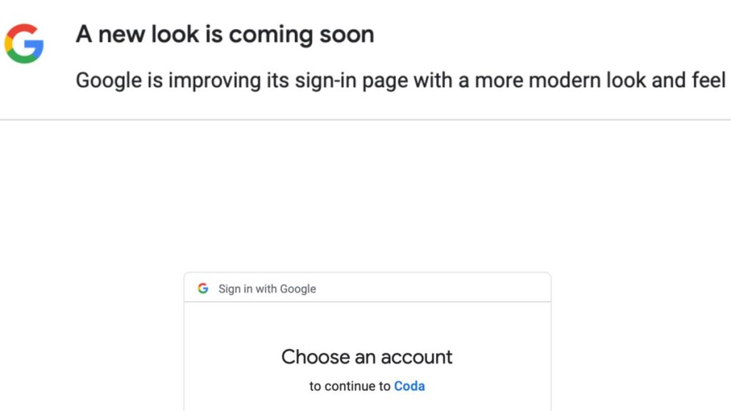 “Um novo visual estará disponível em breve”, diz o banner. “O Google está melhorando a página de login com uma aparência mais moderna.”