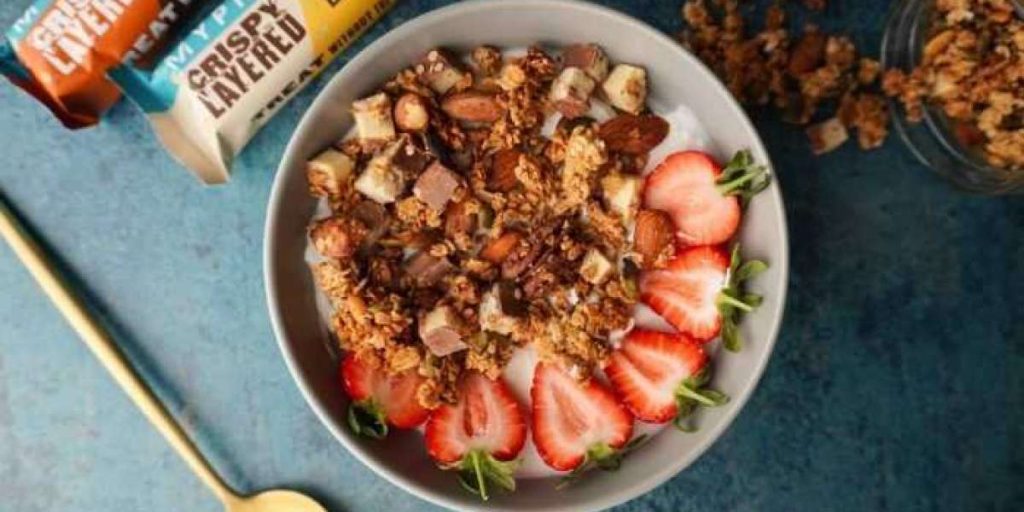 Trocamos o adoçante por pó de stevia e adicionou muitos morangos irresistíveis de nossa nova barra crocante em camadas apenas para levar as coisas para o próximo nível. Ainda não ouviu falar deles? Estamos confiantes de que em breve estarão entre os três principais lanches de proteína de todos os tempos. Sim, nós realmente nos protegemos muito.