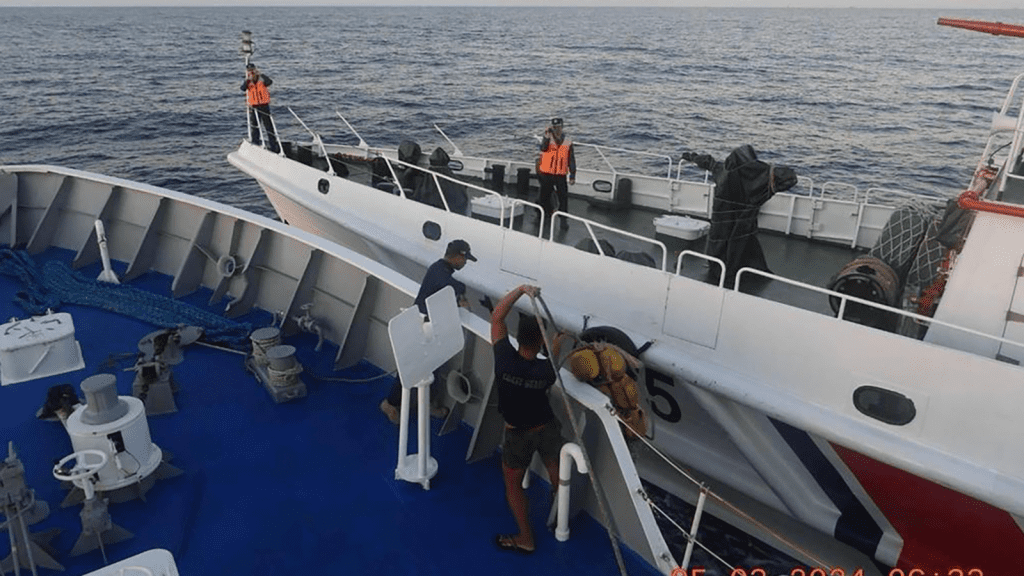 Então, mais de uma hora depois, outro navio da guarda costeira chinesa bloqueou e colidiu com um barco de abastecimento que a guarda costeira filipina estava escoltando, segundo as autoridades.