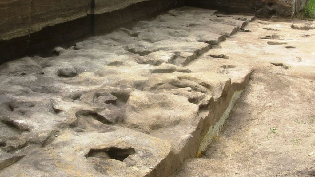 Antigas pegadas de animais, incluindo a primeira evidência de elefantes na região, também foram encontradas no local.