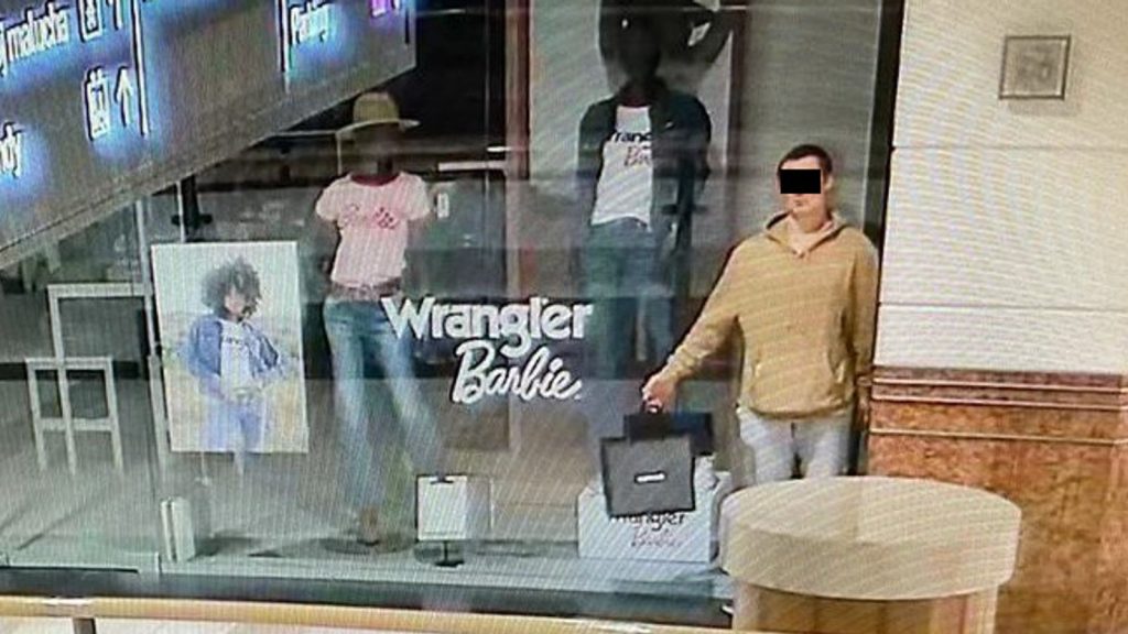 Imagens de CCTV mostraram o jovem de 22 anos parado e segurando uma sacola na vitrine de um shopping center enquanto este fechava.