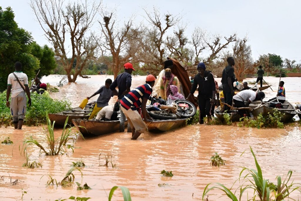 No Níger, as pessoas foram forçadas a usar canoas depois que fortes chuvas danificaram estradas principais.
