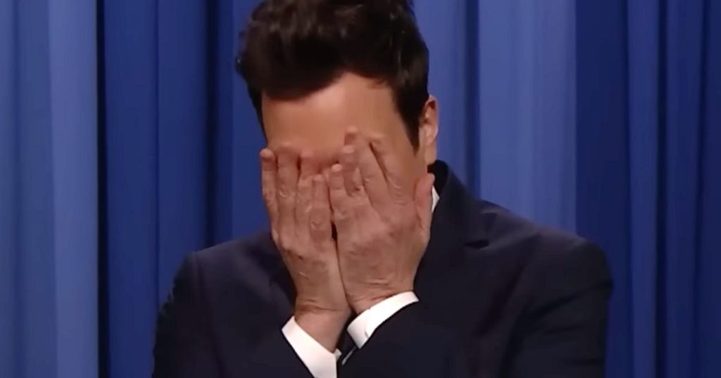 O erro de digitação levou o apresentador do “The Tonight Show”, Jimmy Fallon, a enterrar a cabeça nas mãos.
