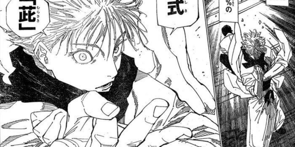 O painel seguinte mostrava Mei Mei, que estava verificando um site de jogos de azar onde as pessoas apostavam na batalha entre Gojo e Sukuna, e ela estava feliz em ganhar um bom dinheiro com isso. Enquanto isso, Yuji e Kusakabe estavam envolvidos em uma batalha amigável, onde o primeiro dominou facilmente o último. Por outro lado, Inumaki e Yuta discutiram sobre o braço do primeiro, que ele perdeu devido a Sukuna.